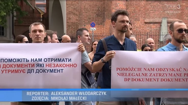 Українські чоловіки вийшли на акцію протесту під консульство України у Вроцлаві. Вони вимагають видати паспорти, які, на їхню думку, влада затримує до шести місяців всупереч закону.