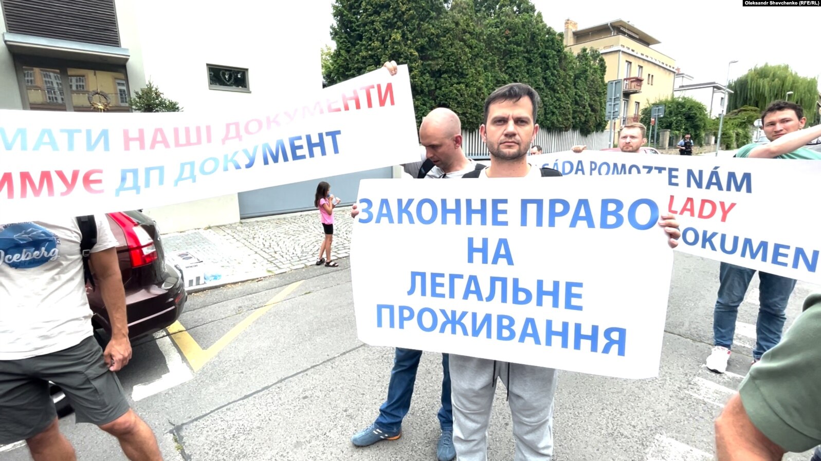 Під посольством у Празі мітингували чоловіки, яким не видають паспорти